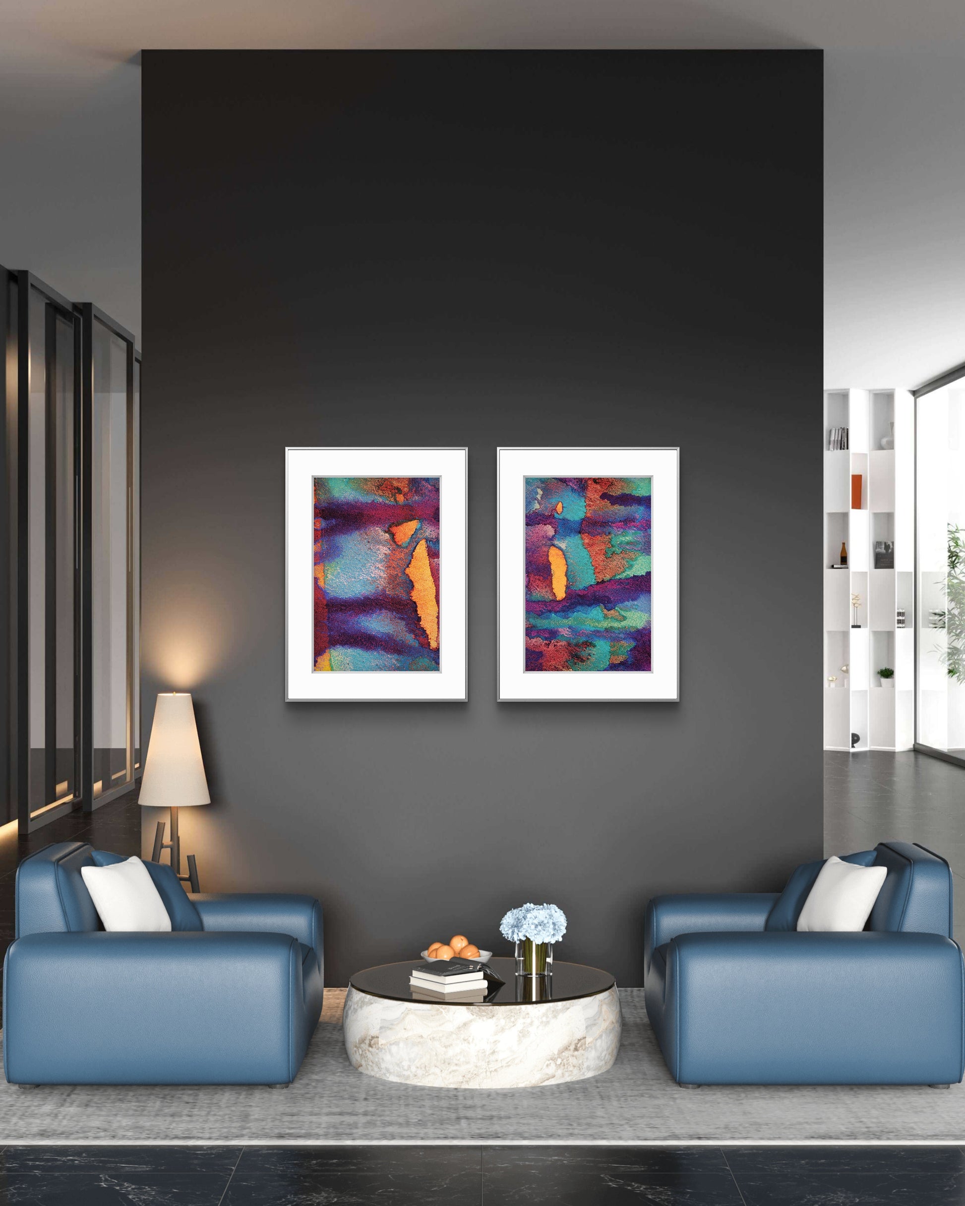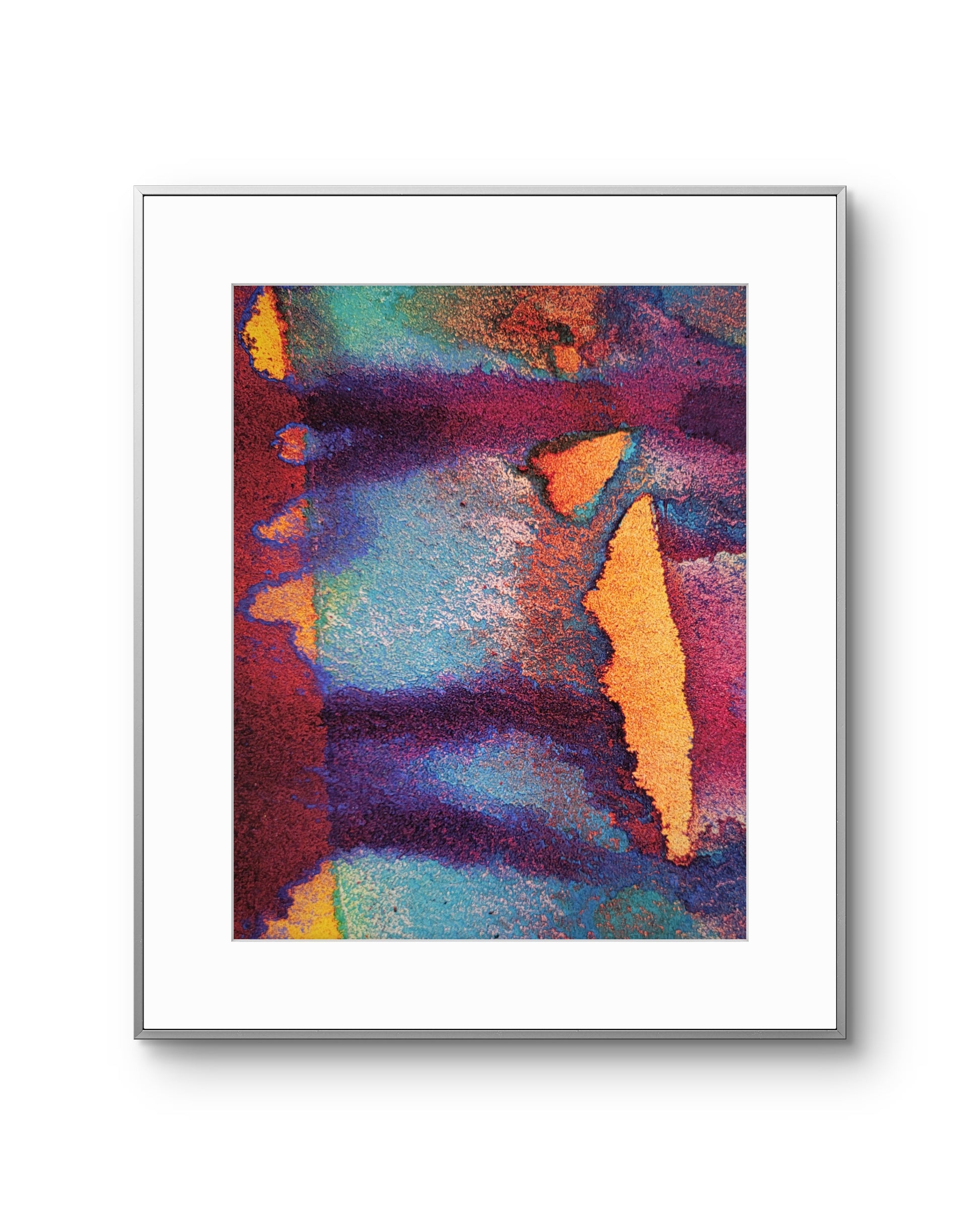 This fine art print reveals a landscape shaped by fire and flow — where threads of ochre, rust, and violet twist together in molten motion. The image was drawn from a section of a small 4x10 watercolor, its most luminous moment transformed into a larger, immersive view. Beautiful on its own or paired with Molten Thread – Magnification No.1, it captures the energy of creation frozen mid-movement.