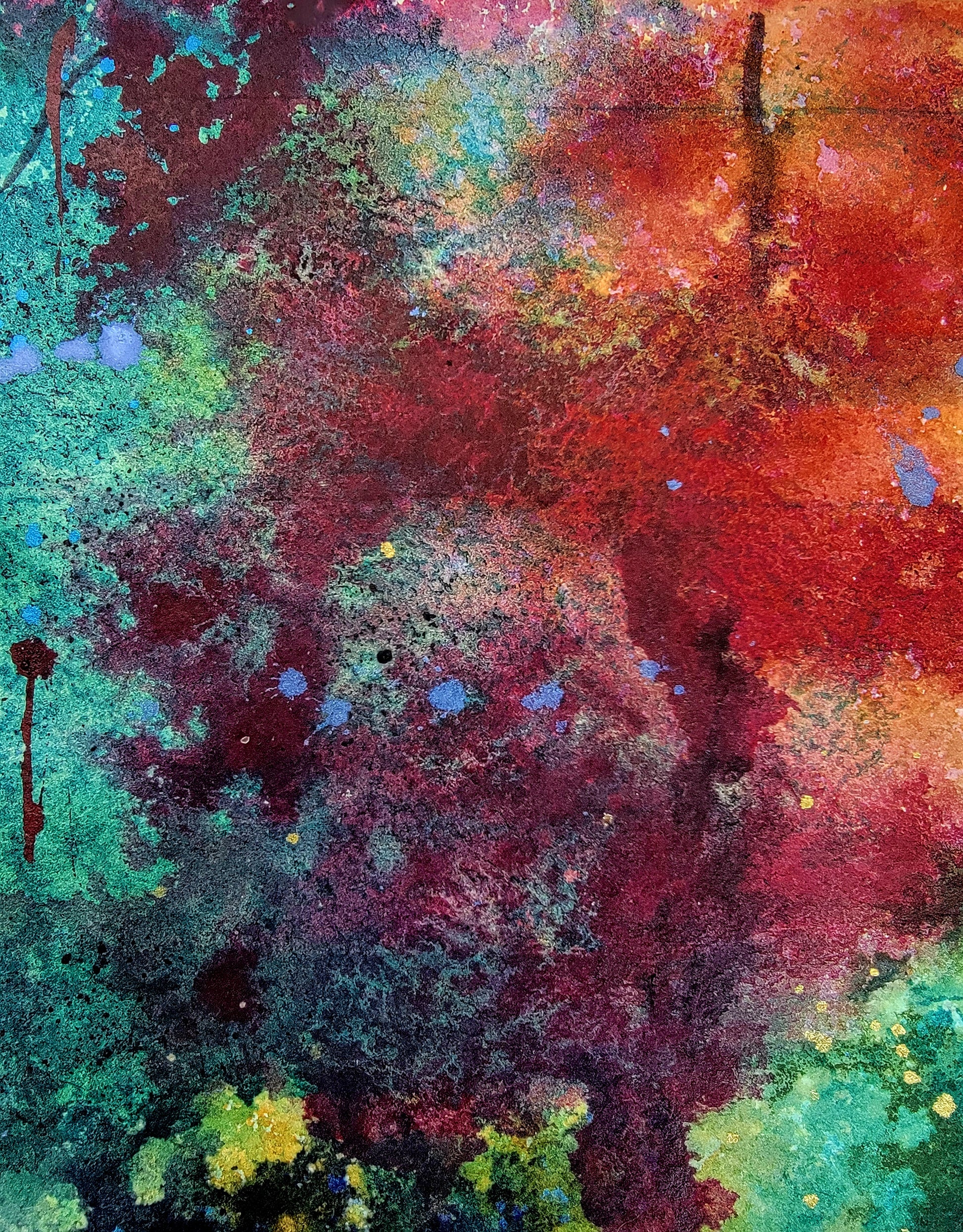This expressive watercolor captures a forest alive with color—emerald, crimson, cobalt—blurring the line between memory and imagination. Loose washes and soft textures suggest trees without defining them, creating a dreamlike atmosphere. Reverie invites the viewer to pause and wander, offering a moment of stillness inside a world that feels both vibrant and serene.